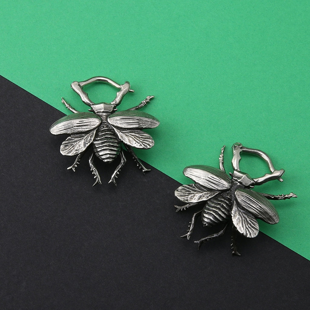 Unique beetle ear weights to add to your collection! These are made from white brass. Brass is not meant for long term wear, it may oxidize under extreme moisture conditions. Must be size 0G or bigger to wear. Clicker opens and clicks closed. Size is about 33mm x 32mm. For healed piercings/lobes. Sold in pairs (2pcs).