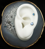 Sparkling, titanium threadless top which features a domed, bezel-set, aqua blue cz gem. Available in twp gem sizes: 4mm and 5mm. This top piece is made from ASTM F-136 titanium and fits most threadless posts. Pin size is 25G. Sold individually (1pc - top only).