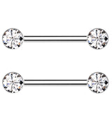 Bezel Clear CZ Threadless Titanium Nipple Barbells