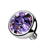 Cute internally threaded top piece to add to your piercing! Made from durable ASTM F-136 titanium with light purple CZ gems, this internally threaded top works with 16G piercings. Gem size is 3mm. The 16G features an M0.8 threading. Sold individually (1pc).