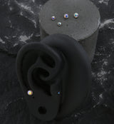 Colorful internally threaded top piece to add to your piercing! Made from durable 316L stainless steel with rainbow aurora CZ gems, this internally threaded top works with 14G and 16G piercings. CZ gems available in 3mm and 4mm. The 16G features M0.8 threading and 14G features M1.2 threading. Sold individually (1pc).