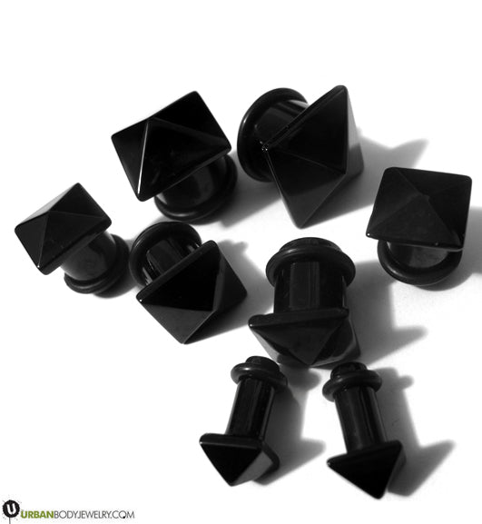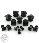 Square, yet classy! These plugs are made of gorgeous black stone shaped into a square pyramid design. But don’t worry, the wearable portion is still a comfortably smooth, circular shape. The single-flare plugs are sold in pairs, and come in any of the following many sizes: 4 gauge (5mm), 2 gauge (6mm), 0 gauge (8mm), 00 gauge (10mm), 1/2 inch (12mm), 9/16 inch (14mm), and 5/8 inch (16mm). We also offer you to choose from 3 other styles for these plugs.
