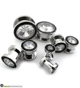 Black & Clear CZ Diamond Stainless Steel Plugs