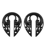 Sold in pairs (2pc) Hand made 30g each 1/2" or bigger to wear Height: 1 & 3/4" (45mm) Width: 1 & 1/2" (38mm) Black PVD 316L stainless steel