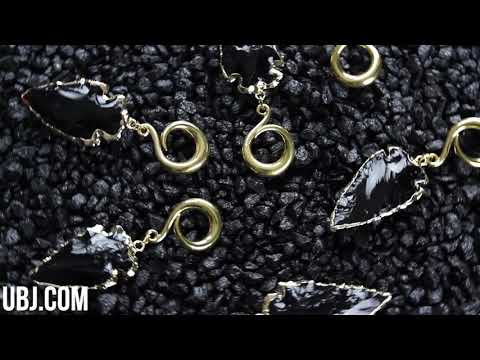 Sold in pairs (2pc) NOTICE: Each piece will be 100% unique in color, pattern and size Obsidian electroplated arrowhead Appx 14 grams each piece 2G or bigger to wear Appx Width: 25mm +- Appx Height: 80mm +- Made from 316L stainless steel Free domestic shipping