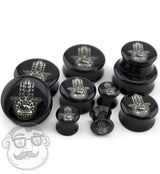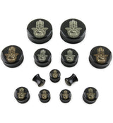 Sold in pairs Hamsa hand logo Double flares Acrylic Pick from 0G - 1 & 1/4" Wearable surface: 10mm