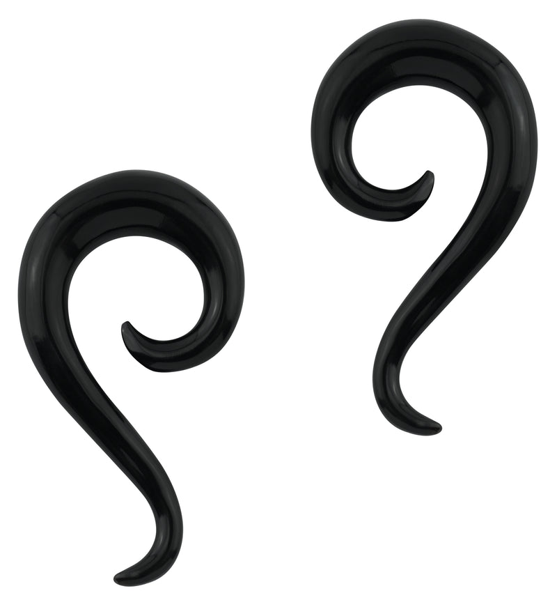 Our Black Horn Tail Spirals are made from sustainable water buffalo horn. They are available in 8G - 00G, and each one is handmade. Perfect for adding unique style to your look. Sold in pairs (2pcs).