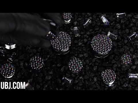 The double flare plugs are sold in pairs, though due to their unusual nature, each plug is different. We’ll do our best to provide you with a matching pair. Get your Black Iridescent Glass Plugs in any of the following sizes: 2 gauge (6mm), 0 gauge (8mm), 00 gauge (10mm), 7/16 inch (11mm), 1/2 inch (12mm), 9/16 inch (14mm), 5/8 inch (16mm), 3/4 inch (19mm), 7/8 inch (22mm), and 1 inch (25mm).