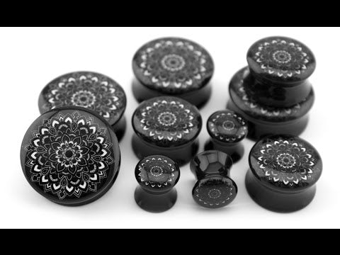 Sold in pairs Mandala flower logo Double flares Acrylic Pick from 0G - 1 & 1/4" Wearable surface: 10mm