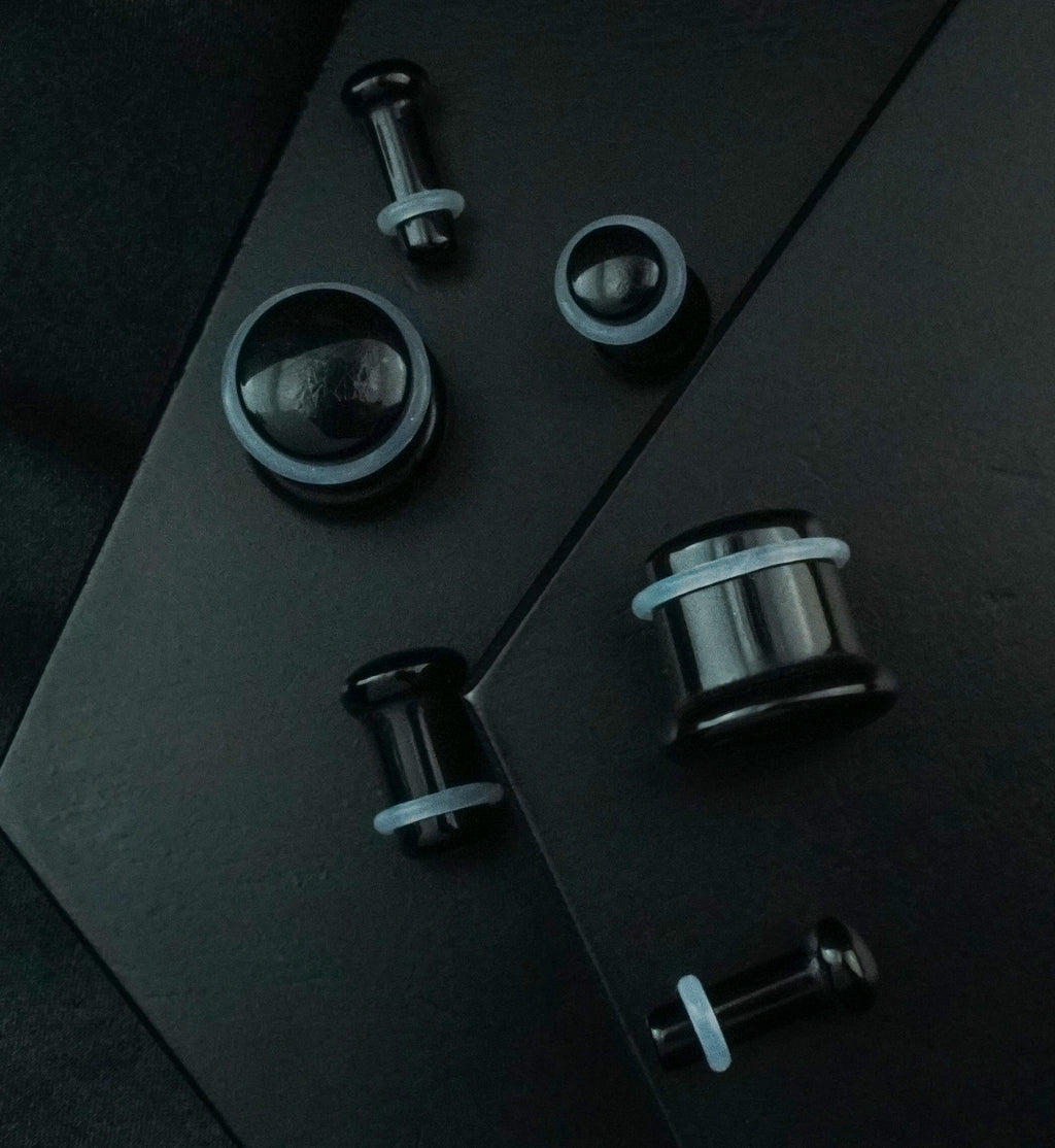 Black Obsidian Stone Plugs - Single Flare with Grooves