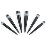 Black tapers made from black obsidian stone. Great option to have in your collection. Available in sizes 4G (5mm) - 0G (8mm). Comes with two clear " O" rings. Sold individually (1pc). For a pair, mark quantity to 2.