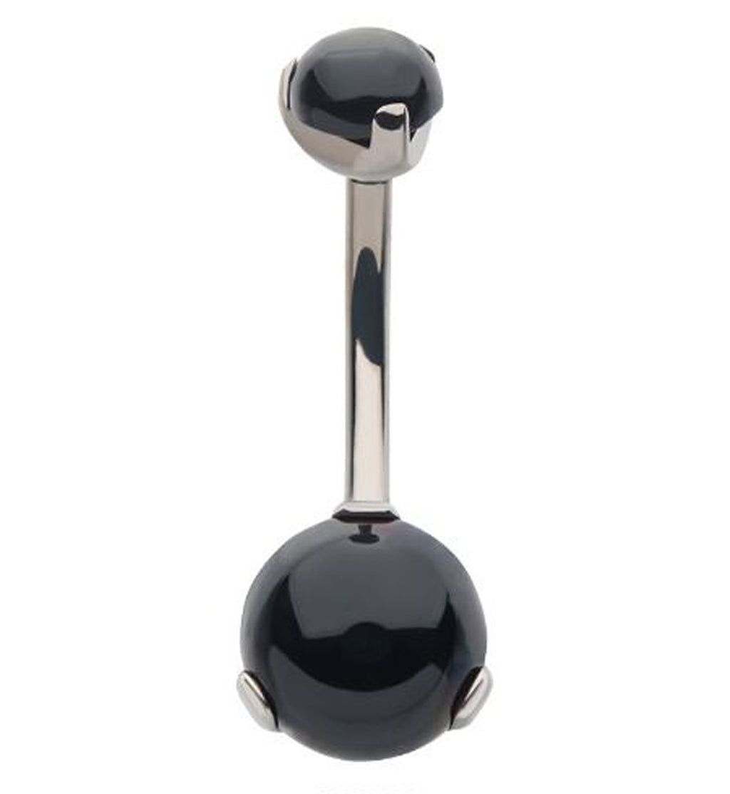 Accessorize with style and edge with our Black Onyx Stone Titanium Belly Button Ring! Made with ASTM F136 titanium, this 14 gauge belly ring features a 7/16" barbell and sleek black onyx stones. Sold individually and externally threaded for easy wear.