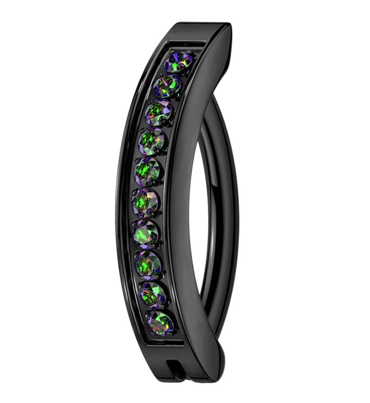 Black PVD Bar Black Aurora CZ Stainless Steel Hinged Belly Button Ring