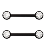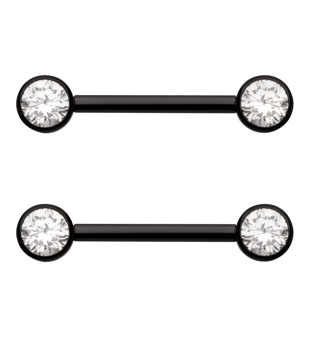 Black PVD Bezel Clear CZ Threadless Titanium Nipple Barbells