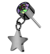 Black PVD Black Aurora CZ Dangle Star Titanium Threadless Top