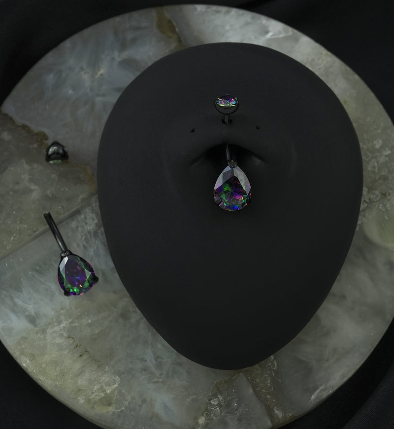 Black PVD Black Aurora Teardrop CZ Titanium Belly Button Ring