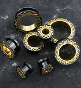 Black PVD Brass Filigree Stainless Steel Tunnel Plugs