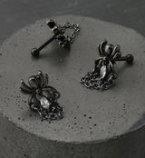 Black PVD Chained Spider CZ Cartilage Barbell