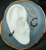 Hinged segment ring has a coil design accented along the bottom. Made from black pvd on 316L stainless steel. Wearable area is 3/8" (10mm) with a gauge size of 16G. The hinged design makes this piece easy to put in and take out. Sold individually (1pc) and meant for healed piercings.