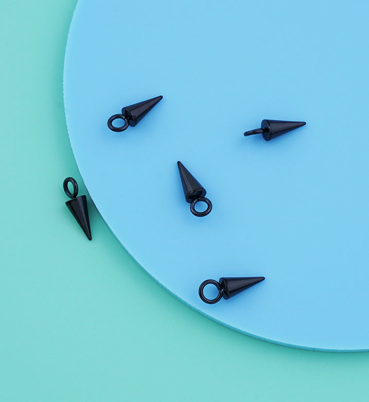 Cool cone charm that has an O-ring on the end to hang from a cartilage/tragus/septum hoop ring. Made from black pvd on ASTM F-136 titanium. Measures about 9mm x 4mm (including "O" ring). Sold individually (1 piece).