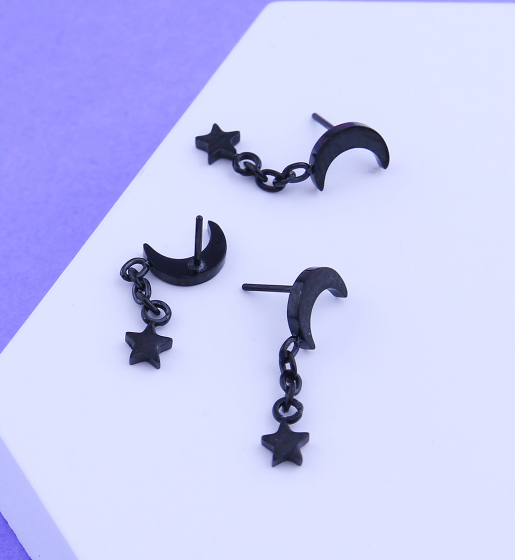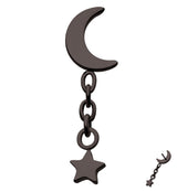 Black PVD Crescent Moon Dangle Star Titanium Threadless Top