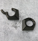 Dark V-shaped hinged ear weights. Made from black pvd on 316L stainless steel with a magnetic hinged design. Height is 37mm, width is 33mm, weight is 28 grams each. 2G or bigger to wear. Sold in pairs (2pcs).