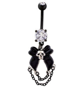 Black PVD Death Bow Dangle Chain Stainless Steel Belly Button Ring
