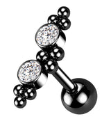 Black PVD Double CZ Gem Cluster Bead Cartilage Barbell