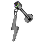 Black PVD Electric Bolt Dangle Black Aurora CZ Titanium Threadless Labret