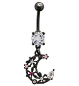 Black PVD Floral Moon CZ Stainless Steel Belly Button Ring