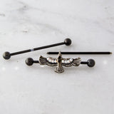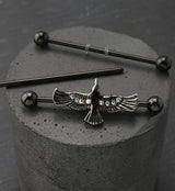 Black PVD Flying Raven Rainbow Aurora CZ Industrial Barbell