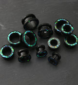 Black PVD Glitter Green Opalite Stainless Steel Screw Back Tunnels