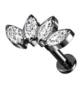 Black PVD Half Crown CZ Gem Titanium Labret Post