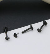 Threadless labrets with a heart design on top and a flower shaped back. Size is 16G. Flower back is 4mm and top measures at 4mm. Made from black pvd on ASTM F-136 titanium. Length is 5/16" (8mm). Sold individually (1 pc).