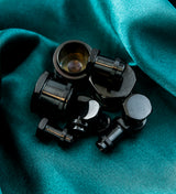 Hexagon black pvd stainless steel plugs with a flat front and an adjustable "O" ring that is made from both stainless steel and silicone in the inside, so it is easily adjustable. Hallow interior. Single flared. Choose your size from 2G (6mm) - 5/8" (16mm). Made from black pvd on 316L stainless steel. Sold in pairs (2pcs).