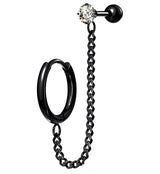 Black PVD Linked Hinged Hoop Ring & CZ Cartilage Barbell