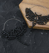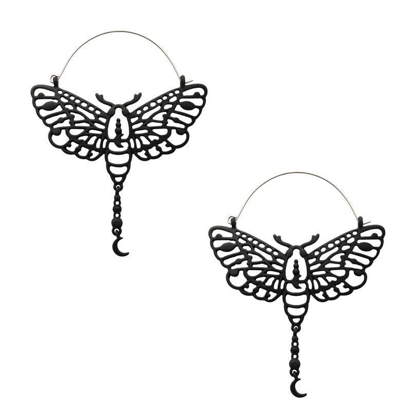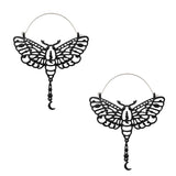 Black Luna Moth Dangle Moon Stainless Steel Plug Hoops