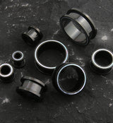 Black PVD MOP Rim Stainless Steel Tunnel Plugs