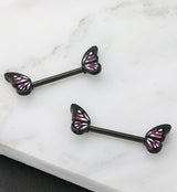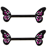 Black PVD Pink Butterfly Wing Stainless Steel Nipple Barbell