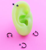 Black PVD Prong Black Aurora CZ Titanium Internally Threaded Circular Barbell