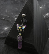 Black PVD Psychedelic Cat Purple Crystal Stainless Steel Belly Button Ring