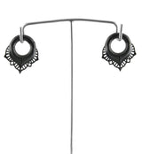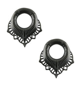 Filigree designed ear weights made from black pvd on 316L stainless steel. Weight is approximately 28 grams each and they measure 40 x 35mm each. Must be 2G or bigger to wear. Magnetic hinge closure. Sold in pairs. For healed piercings.