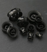 Make your friends hiss with envy with these snake stainless steel tunnel plugs! Made from durable black pvd 316L stainless steel with a wearable area of 8mm. Choose your size from 0G (8mm) - 1" (25mm). Sold in pairs (2 pieces).