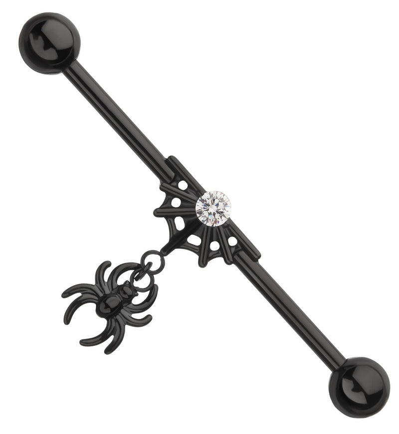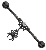 Black PVD Spiderweb Clear CZ Dangle Spider Internally Threaded Titanium Industrial Barbell