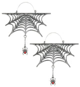 Black PVD Spiderweb Dangle Spider Stainless Steel Plug Hoops
