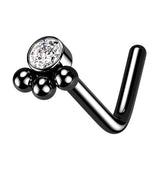 Black PVD Triple Beaded Clear CZ L Bend Nose Stud