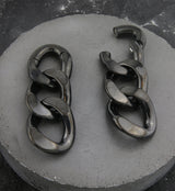 Add a stylish edge to your look with these black pvd 316L stainless steel, triple chain link hinged ear weights. Enjoy the look and comfort with the hinged design, allowing for easy insertion and removal. Sold in pairs of two, these ear weights come size 2G (6mm) so must be 2G or bigger. They measure about 55mm x 22mm and weight 28 grams each. Sold in pairs (2pcs).