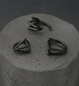 Hinged segment ring made from black pvd on ASTM F-136 titanium with a triple v-shape design. Size is 16G. Choose your inner diameter size from 5/16" (8mm) and 3/8" (10mm). The hinged design makes this piece easy to insert and remove. Sold individually (1pc).