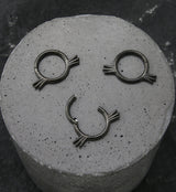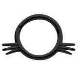 Hinged segment ring made from black pvd on 316L stainless steel with a hoop shape and accented whiskers design making it look like a little cat. Size is 16G. Inner diameter size is 5/16" (8mm). The hinged design makes this piece easy to insert and remove. Sold individually (1pc).