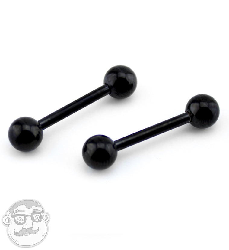 Keep it badass and basic with our black nipple rings! The 14g barbell is constructed from 316L stainless steel with black PVD coating and external threading for easy wear. Choose your ideal length (1/2”, 9/16” or 5/8”) using the dropdown menu below. Ideal for healed piercings only and sold as a pair.